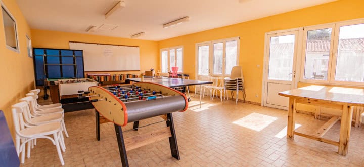Dans la résidence : salle de jeux (ping-pong, baby-foot…) terrain de boule, bac à sable
