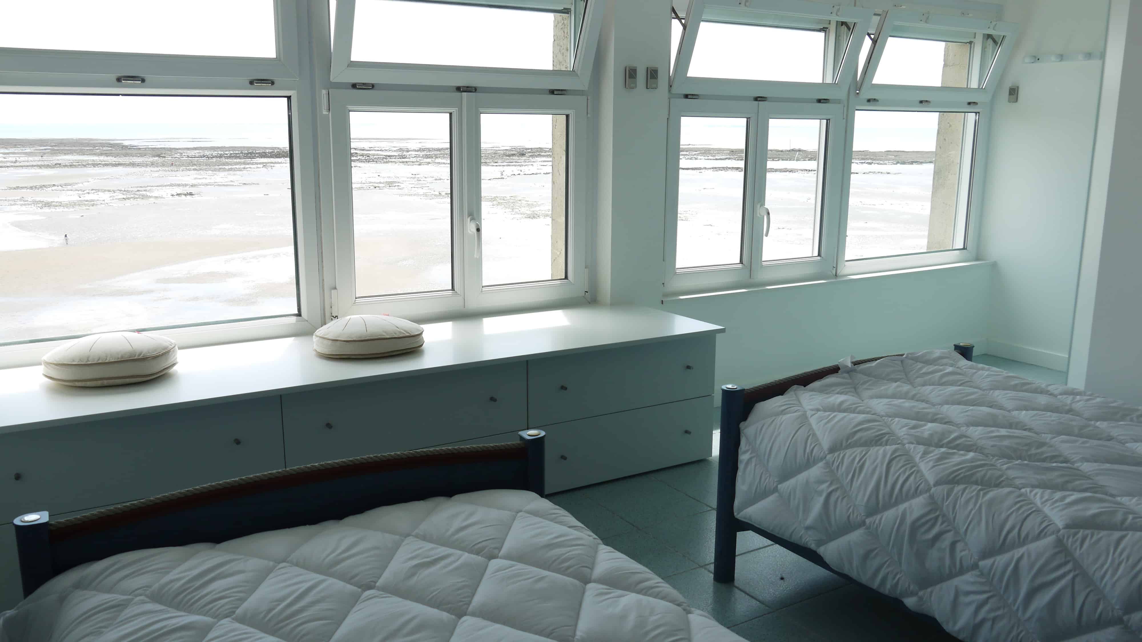 Appartement comprenant 1 chambre avec 2 lits de 90 et un chevet, (couettes, oreillers et draps fournis), une salle d’eau avec une douche, une vasque, un wc, un radiateur sèche-serviette. Une pièce de vie comprenant une cuisine aménagée avec un four traditionnel, une plaque de cuisson 4 feux , une hotte, un réfrigérateur, congélateur, un four micro-ondes, une télévision, un canapé convertible deux places en couchage, une table de salon. Cet appartement entièrement situé en plein front de mer se prolonge sur une grande terrasse plein sud aménagée de salons de jardin et de transats face à l’ile de Noirmoutier.